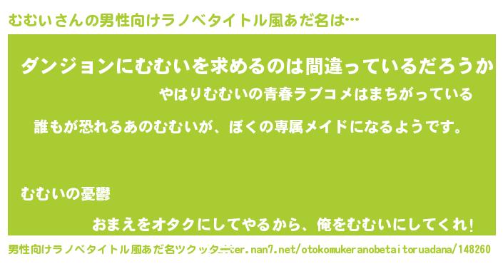 | 女子向けラノベタイトル風あだ名 | 『異世界でカフェむむいを開店しました。』 |
