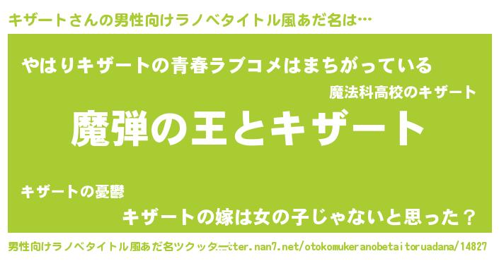 | 女子向けラノベタイトル風あだ名 | 『キザートが死なない童話 林檎のキザートの診療簿』 |