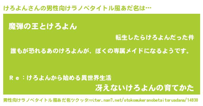 | 意味不明あだ名 | 『永久保存けろよん』『自称けろよん』 |