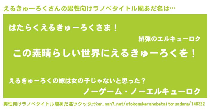 | 意味不明あだ名 | 『住所不定無職えるきゅーろく(8歳)』 |