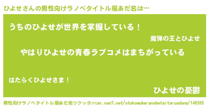 | ヘコむあだ名 | 『牛乳』『ひよにー』『ひよせ(苦笑)』 |