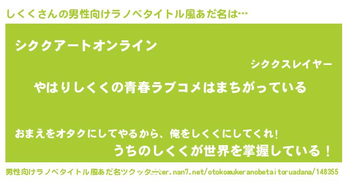 | ヘコむあだ名 | 『豆乳』『しくにゅー』『しくく(笑)』 |
