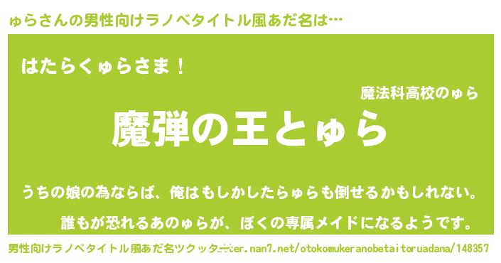 | ヘコむあだ名 | 『ゅら(苦笑)』『豆乳』『ゅらもー』 |