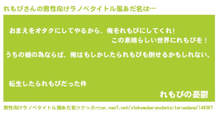 | 胡散臭い通販商品みたいなあだ名 | 『運命の人と巡り会える高級そうな絵画…その名も「れもぴ」』 |