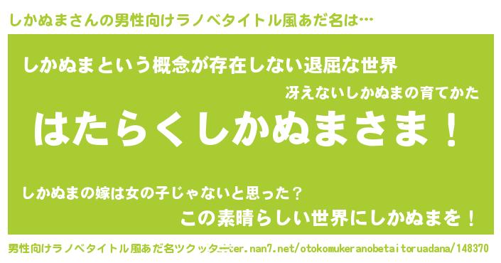 | 意味不明あだ名 | 『永久保存しかぬま』『自称しかぬま』 |