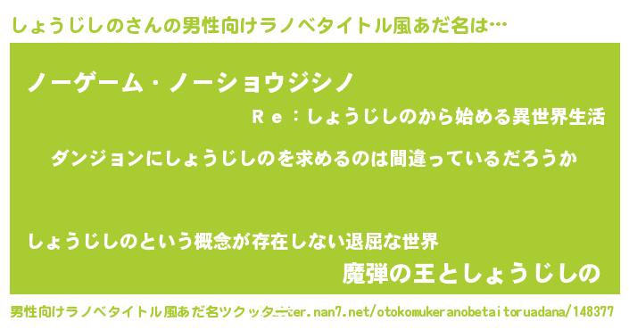 | 女子向けラノベタイトル風あだ名 | 『しょうじしのは平凡を望む』 |