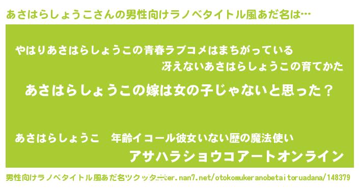 | ポケモン風あだ名 | 『ヒアサハラショウコ』『アサハダネ』 |