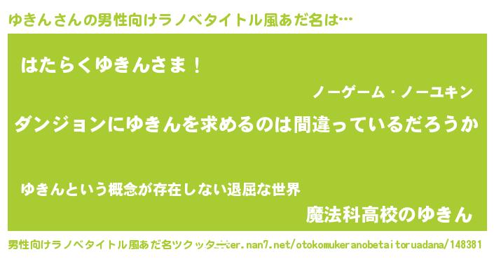 | ヒーロー風カッコイイあだ名 | 『暗黒騎士ユキ』『超時空戦士ユキン』 |