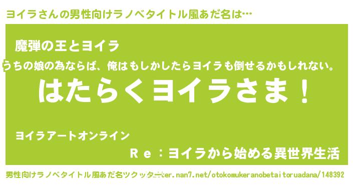 | ヒーロー風カッコイイあだ名 | 『仮面ヨイダー』『超時空戦士ヨイラ』 |