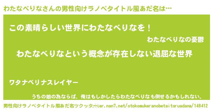 | 胡散臭い通販商品みたいなあだ名 | 『絶対に幸福をもたらす健康食品…その名も「わたなべりな」』 |