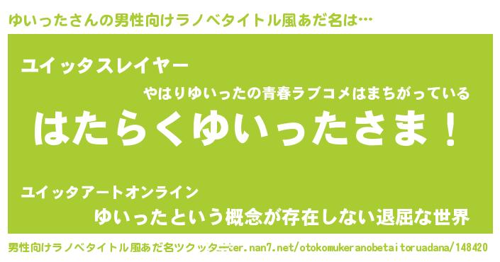| ヘコむあだ名 | 『ゆいった(笑)』『牛乳』『ゆいっぺ』 |