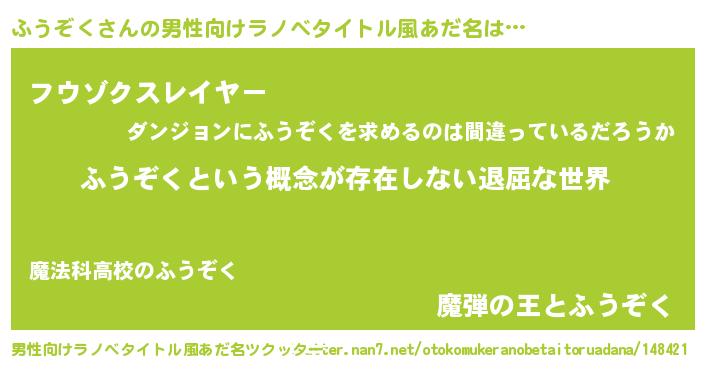 | 意味不明あだ名 | 『永久保存ふうぞく』『自称ふうぞく』 |
