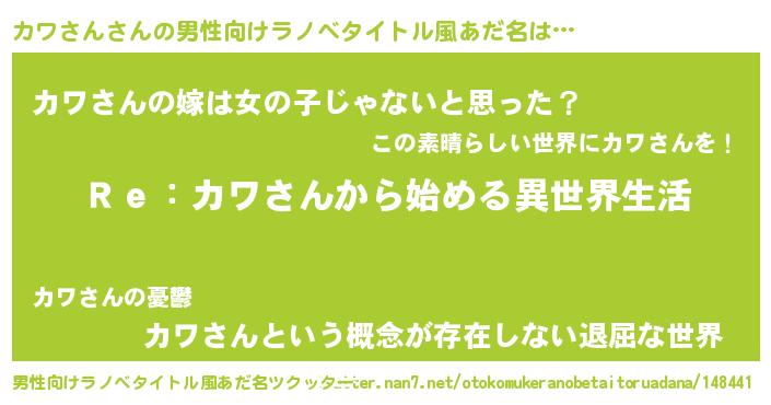 | 女子向けラノベタイトル風あだ名 | 『闇のカワさん』 |