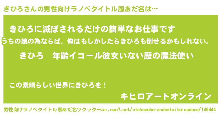 | 胡散臭い通販商品みたいなあだ名 | 『億万長者になれるブレスレット…その名も「きひろ」』 |