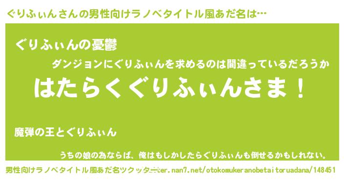| 胡散臭い通販商品みたいなあだ名 | 『必ず成功する水晶球…その名も「ぐりふぃん」』 |