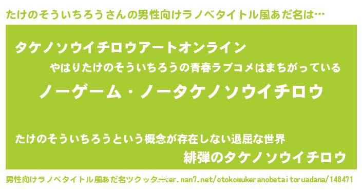 | 意味不明あだ名 | 『眠気覚ましガムたけのそういちろう味』 |