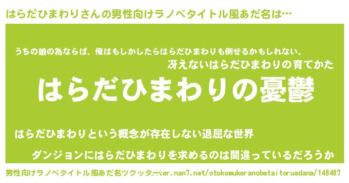 | 伝説のあだ名 | 『伝説のスナイパーはらだひまわり』 |