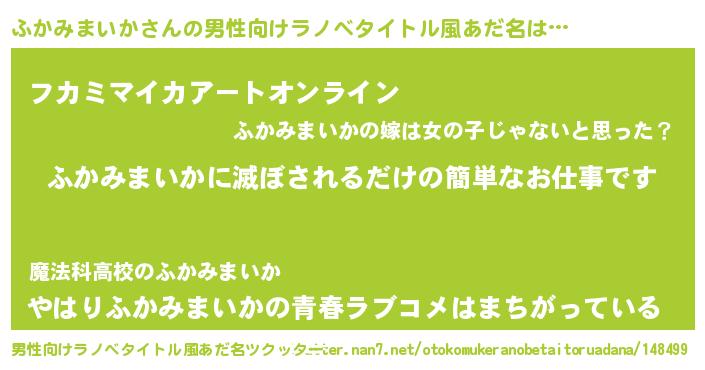 | 胡散臭い通販商品みたいなあだ名 | 『モテモテ間違いなし霊験あらたかなお札…その名も「ふかみまいか」』 |