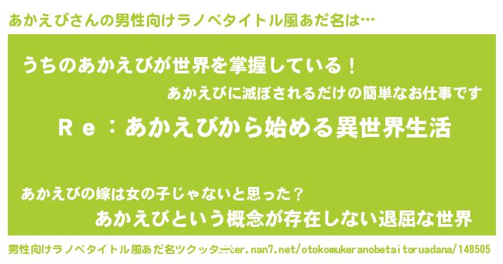 | 意味不明あだ名 | 『自称あかえび』『永久保存あかえび』 |