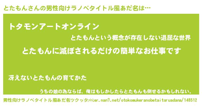 | ファンタジー風あだ名 | 『トタフェル』『エターナルトタモンー』 |