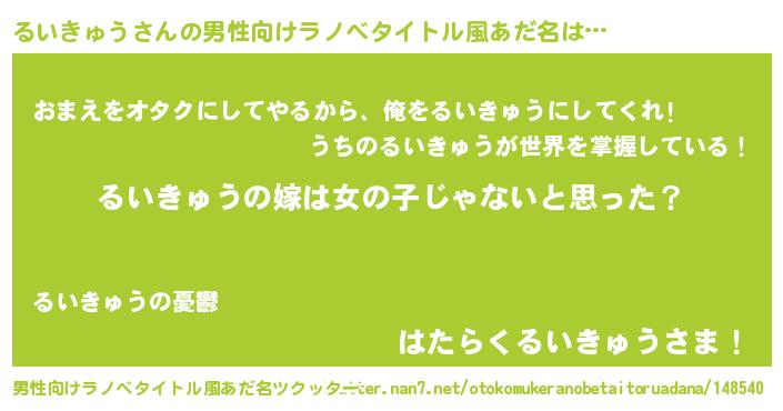 | 女子向けラノベタイトル風あだ名 | 『るいきゅう様がみてる』 |