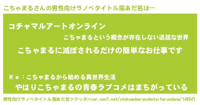 | ファンタジー風あだ名 | 『コチフェル』『エターナルコチャマルー』 |