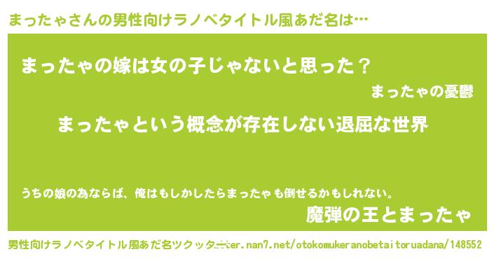 | 女子向けラノベタイトル風あだ名 | 『異世界で失敗しない100のまったゃ』 |