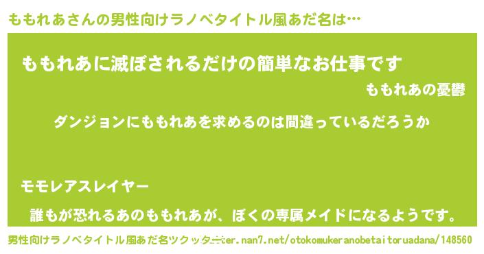 | 女子向けラノベタイトル風あだ名 | 『ももれあの卵を拾いまして』 |