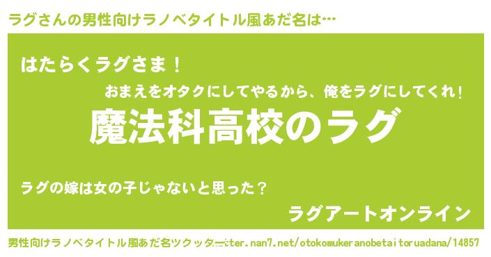 | ヘコむあだ名 | 『ラグにゅー』『ラグっちょ』 |