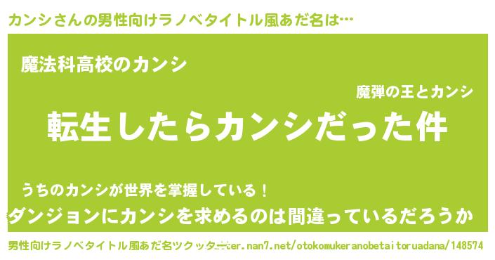 | 女子向けラノベタイトル風あだ名 | 『婚約破棄系悪役カンシに転生したので、保身に走りました。』 |