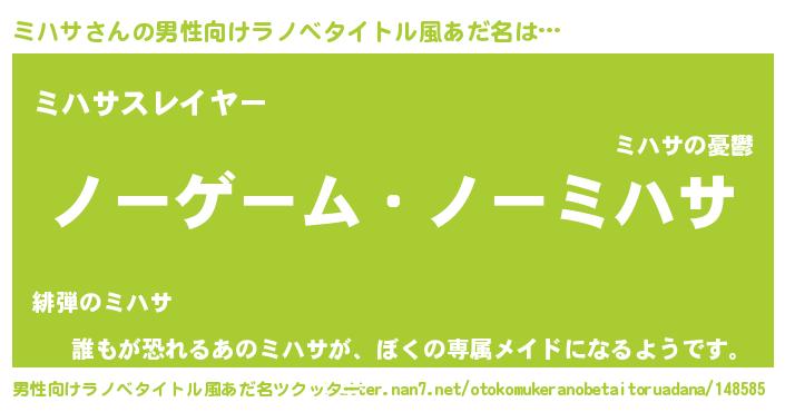 | ヒーロー風カッコイイあだ名 | 『天空の使者ミハサ』『ネオミハサ』 |