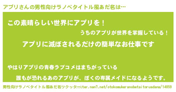 アプリさんの男性向けラノベタイトル風あだ名をツクッター!