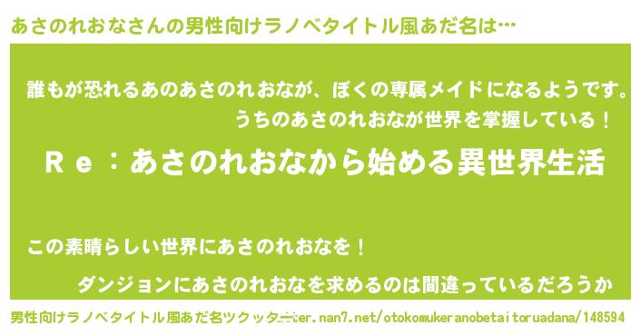 | 女子向けラノベタイトル風あだ名 | 『闇のあさのれおな』 |
