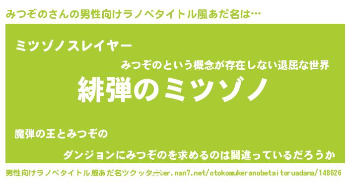 | 胡散臭い通販商品みたいなあだ名 | 『信頼と実績のペンダント…その名も「みつぞの」』 |