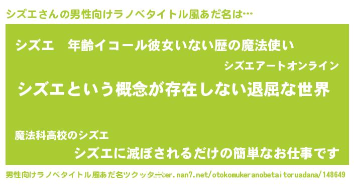| ヘコむあだ名 | 『シズエ(笑)』『シズもー』『シズを』 |