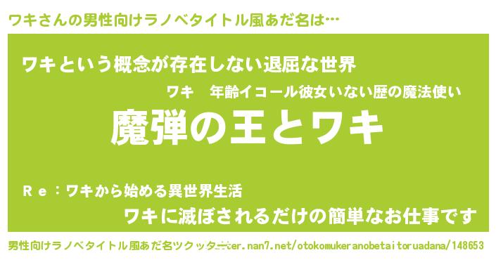 | 女子向けラノベタイトル風あだ名 | 『ワキが死なない童話 林檎のワキの診療簿』 |