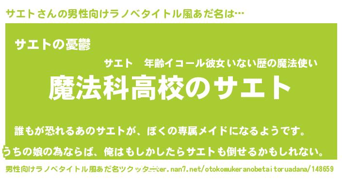 | 女子向けラノベタイトル風あだ名 | 『サエトアンティーク』『サエトの婚約者』 |