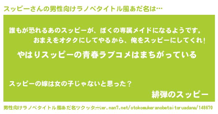 | ヒーロー風カッコイイあだ名 | 『ウルトラスッピーマン』『ネオスッピー』 |