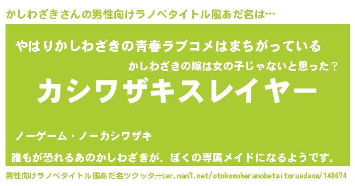 | 胡散臭い通販商品みたいなあだ名 | 『幸せが訪れる高級そうな絵画…その名も「かしわざき」』 |