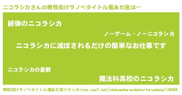 | ヒーロー風カッコイイあだ名 | 『究極戦士ニコラシカ』『炎刃騎士ニコ』 |