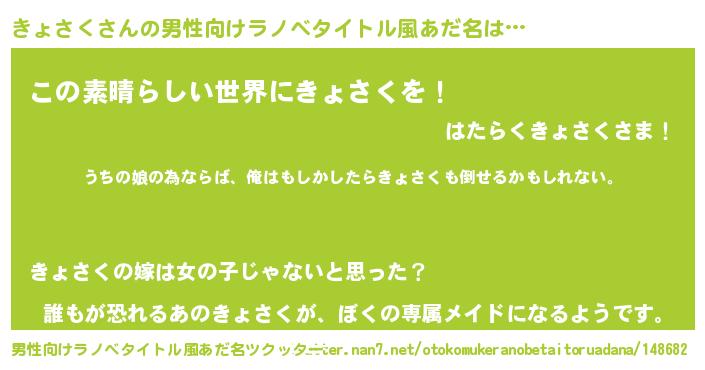 | ファンタジー風あだ名 | 『エターナルキョサクー』 |
