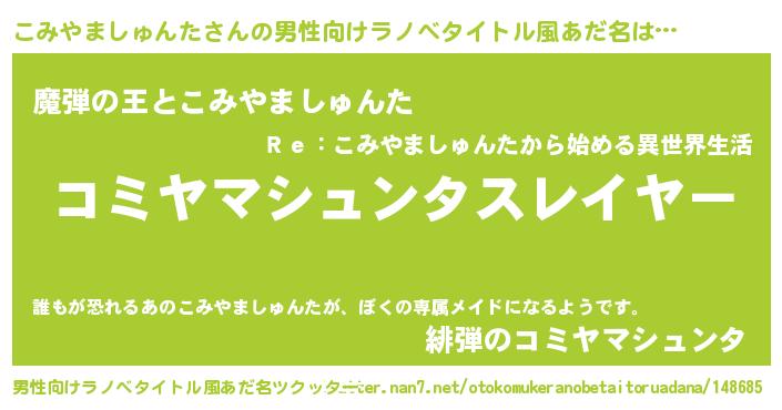 | ヘコむあだ名 | 『こみやましゅんた(苦笑)』『こみもー』 |