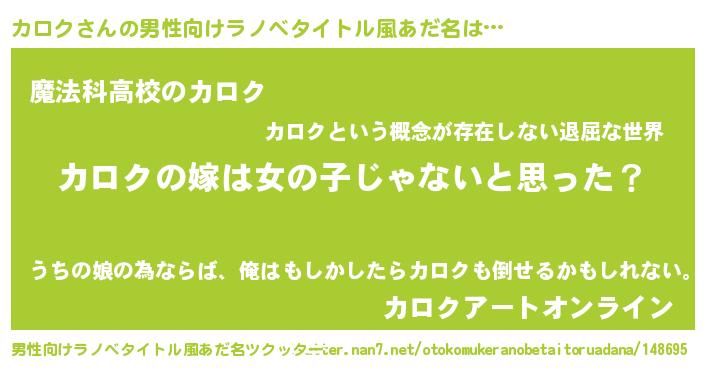 | 胡散臭い通販商品みたいなあだ名 | 『全米が絶賛したサプリメント…その名も「カロク」』 |