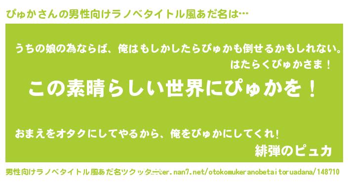 | 胡散臭い通販商品みたいなあだ名 | 『世界中を虜にした世界で10本だけ現存している希少なブランデー…その名も「ぴゅか」』 |