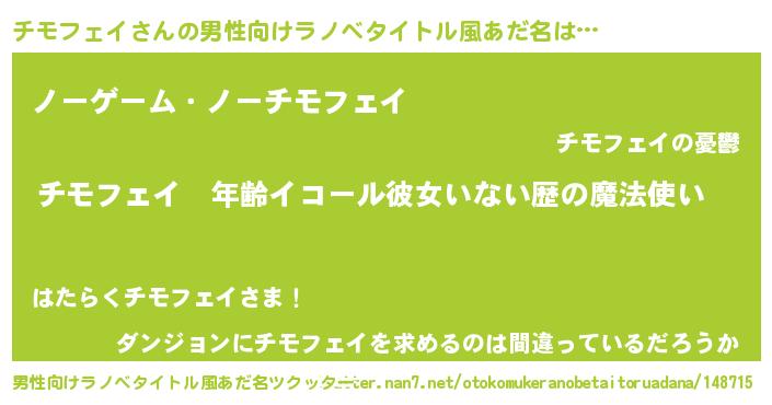 | 女子向けラノベタイトル風あだ名 | 『チモフェイの玉の輿計画!』 |