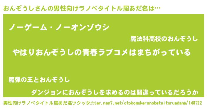 | 女子向けラノベタイトル風あだ名 | 『おんぞうし伯爵の花嫁』 |