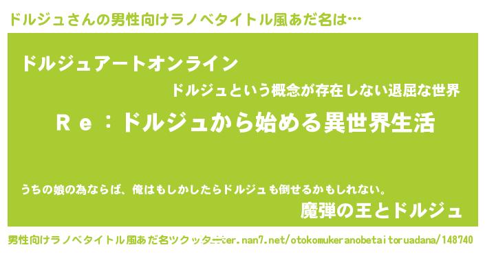 | 女子向けラノベタイトル風あだ名 | 『ドルジュストレイドッグス』 |