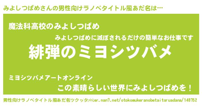 | 意味不明あだ名 | 『自称みよしつばめ』 |