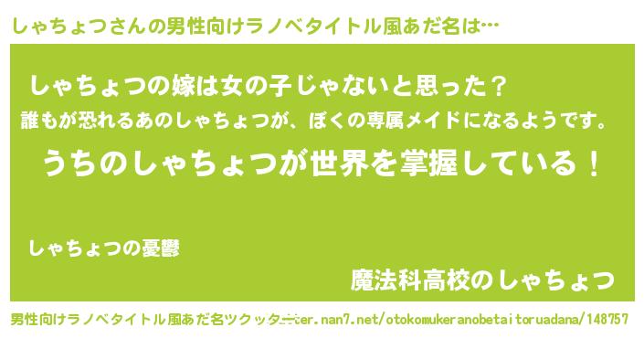 | ピコ太郎風あだ名 | 『シャ八郎』『ピコシ郎』『シコ十郎』 |