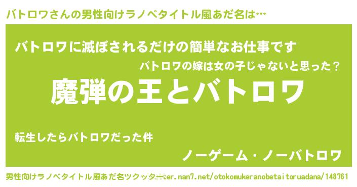 | 意味不明あだ名 | 『住所不定無職バトロワ(53歳)』 |